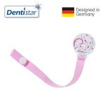 Dentistar Pacifier Holder makes sure the pacifier is always within reach whenever it’s needed! This is suitable for pacifiers with a ring. The pacifier holder can be attached to the baby’s clothing (up to 3 mm thickness). The fastening clip is easy to use and attaches securely to baby’s clothes.