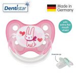 Dentistar toothfriendly pacifier takes into consideration the natural positions of baby ‘s teeth and tongue. This medical pacifier is designed by a German dentist, made with medical-grade silicone in German and is the only pacifier with a dental-step!
